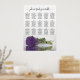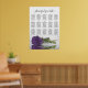 This elegant 15 table wedding seating chart features a beautiful amethyst purple coloured rose reflecting in water with waves and ripples. The title reads "please find your table" in lacy script calligraphy. There is space for the names of the couple and wedding date. This chart has table assignments for 150 guests - 10 people per table. It's sized for a standard A1 (European Size) poster.
