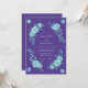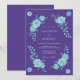 A beautiful arrangement of aqua-hued blossoms and leaves graces a rich amethyst backdrop. The floral motif evokes a sense of enchanting romance and delicate beauty, perfect for a dreamlike occasion. This design features roses and flowing greenery.