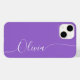 Amethyst Elegant White Calligraphy Script Custom Personalised Name iPhone 14 Smart Phone Cases features a modern and trendy simple and stylish design with your personalised name in elegant hand written calligraphy script typography on a amethyst background. Designed by ©Evco Studio www.zazzle.com/store/evcostudio