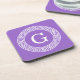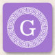 Amethyst Wht Greek Key Rnd Frame Initial Monogram Coaster