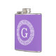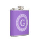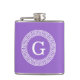Amethyst Wht Greek Key Rnd Frame Initial Monogram Hip Flask