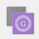 Amethyst Wht Greek Key Rnd Frame Initial Monogram Magnet