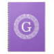 Amethyst Wht Greek Key Rnd Frame Initial Monogram Notebook
