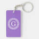 Amethyst Purple and White Greek Key Round Framed Initial Monogram