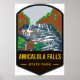 A vintage style park badge design of Amicalola Falls State Park located between Ellijay and Dahlonega in Dawsonville, Georgia, United States of America.