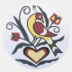 Primary colours, distinctive Amish hex lovebird with heart-and-floral motif