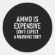 Ammo Is Expensive, Funny, Jokes, Sarcastic Sayings Classic Round Sticker