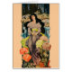 A black haired lady sits among the chrysanthemums. A vintage art nouveau print
