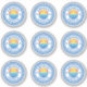 Amorgos Island, Greece multiple sticker pack bundle. This design features sunshine, sea and a Greek pattern circle around the design with the word "Amorgos" and "Greece" inside it.