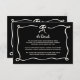These chic and elegant wedding guest information and detail cards feature a hand drawn, wavy illustrated frame with a bow, and stylish handwritten script for a Parisian or French style wedding look. This classic colour option is dark black and ivory and also features a scannable QR code for your wedding website.