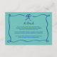 These chic and elegant wedding guest information and detail cards feature a hand drawn, wavy illustrated frame in marseilles blue with a bow on a colourful teal background, and stylish handwritten script for a Parisian or French style wedding look. They also feature a scannable QR code for your wedding website.