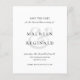 Elegant black and white budget wedding save the date featuring a simple and minimal design with a large ampersand behind the names of the bride and groom. Add your favourite photo to the back or remove the template photo in the design editing tool. This classic style save the date includes traditional wording for a Catholic wedding but the wording may be updated for a non Catholic wedding. An elegant choice that is perfect for a formal wedding.