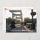 Amsterdam Bridge Holland Postcard. People waiting at the opened Magere Brug (Skinny Bridge) over the Amstel river canal and houses cityscape at sunset in the city of Amsterdam in Noord-Holland, The Netherlands postcard. This great Amsterdam bridge postcard is fully customisable, add your texts and images! A beautiful city of Amsterdam Holland postcard, send it to your friends and/ or family!