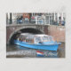 Amsterdam Canal Boat Tour Postcard. View on an Amsterdam bridge and canal with blue canal cruise tour boat and houses cityscape in Holland, The Netherlands postcard. This Amsterdam postcard is fully customisable, add your text and images! A beautiful city of Amsterdam Holland postcard, send it to your friends and/ or family members!