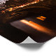 Poster print of Amsterdam canal houses in traditional style next to a bridge over Prinsengracht and Brouwersgracht canals illuminated at dusk during Blue Hour in the Netherlands.