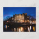 Postcard of the romantic old houses of Amsterdam city, built along Prinsengracht canal, with reflection of the lights in the still water at the beginning of the night in the capital of Holland.