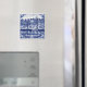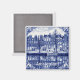 Amsterdam canal houses square fridge magnet in Delft Blue style. Generative content with photography by Velvet Escape.