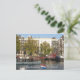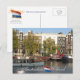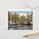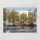 Amsterdam Canal Postcard. View on Amsterdam canal with boat and houses cityscape on a sunny summer day in Holland, The Netherlands postcard. This sunny Amsterdam postcard is fully customisable, add your text and images! A beautiful city of Amsterdam Holland postcard, send it to your friends and/ or family members!