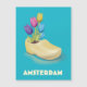 Amsterdam Cloggs and Tulips vintage retro travel poster art print.