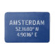 Amsterdam Netherlands latitude and longitude map coordinates in modern urban font. Cobalt blue background with white text