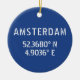 Amsterdam Latitude Longitude Blue Ceramic Tree Decoration