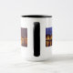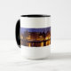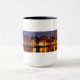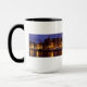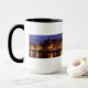 Mug with Amsterdam houses and the Munt Tower at night in the Netherlands