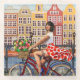 Amsterdam Poster: Pin-Up Girl Cycling. Glass Coaster