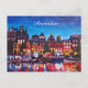 Amsterdam Skyline With Canal At Night Postcard
