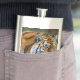 The product is a good size and came exactly as it was pictured. The lid is not attached to the flask, which could be dangerous on drunken nights... The print came out surprisingly well and looks very sharp. Would definitely recommend.
