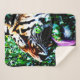 The fabric is really soft, and thick, I’m sitting here with it wrapped around me and it’s so warm! It’s really smooth and sleek on the printed side and fluffy on the back. I love it! Such good quality, so vibrant and clear, not blurry at all! See the photos I’ve attached, there’s no filters or anything on them!