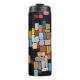 An abstract painting; geometric shapes in an irreg thermal tumbler