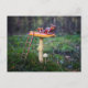 An acorn elf is resting on a mushroom - funny postcrossing postcard