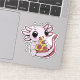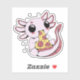 An adorable axolotl eating pizza