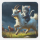 An adorable cat riding a goat square sticker