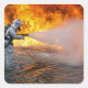 An aircraft rescue firefighting team attempts to spray out a fuel fire