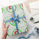 Add a touch of sci-fi flair to your gift wrap with this alien in a Santa hat wrapping paper. Original artwork and personalised text makes this funny Christmas design one of a kind so your packages will stand out under the tree. The red, green and white alien head in a holly wreath design pops on the slightly textured background and it's sure to be a holiday hit with science fiction buffs, ufologists and anyone with a touch of Christmas geek in their heart. We all know that little green men are actually grey, but green works in with the holiday theme so much better!