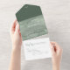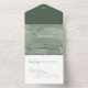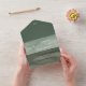 An all-in-one wedding invitation. Elegant green tones combined with a minimalist design and personalized details create a sophisticated yet festive atmosphere.