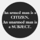 An armed man is a CITIZEN. An unarmed man is a ... Classic Round Sticker