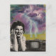 An electrifying retro style collage of a woman, a tv set, and lightening AI generated art