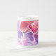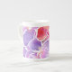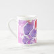 A pretty bone china coffee mug, with a beautiful watercolour design of wallflowers in shades of pink, mauve, purple and blue, from a handpainted design by Judy Adamson.