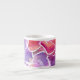 A pretty Espresso coffee mug, with a beautiful watercolour design of wallflowers in shades of pink, mauve, purple and blue, from a handpainted design by Judy Adamson.