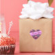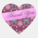 Plum purple with a floral pattern, a designer sticker with thank you text. The thank you text can be personalised to suit any event celebration. The plum purple background and text can also be changed to any colour to coordinate with a desired theme.
