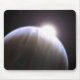 An extrasolar planet with its parent star peeking above its top edge featured with atmosphere.