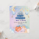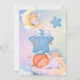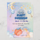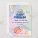 A baby shower invitation design full of joy, with vibrant colours and white clouds, featuring a baby lying on a pillow above a soft cloud. The design includes stars arranged in a coordinated way, with a customisable template to suit different tastes.