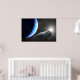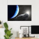 An artist's concept of Neptune's tiny moon Hippocamp that was discovered by the Hubble Space Telescope in 2013. Only 20 miles across, it may actually be a broken-off fragment from a much larger neighbouring moon, Proteus, seen as a crescent in the background. This is the first evidence for a moon being an offshoot from a comet collision with a much larger parent body.