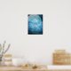 This beautiful poster depicts the blue moon over the ocean, a light blue haze hanging over the horizon.