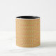 an orange and yellow background with a pattern mug