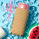 an orange and yellow background with small dots seltzer can cooler