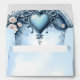 An ornate light blue archway with floral accents, a heart emblem, and roses. Discover an elegant archway featuring two columns with a vaulted top, richly adorned with intricate carvings and a central heart-shaped emblem. White roses with peach hues, delicate leaves, and small white blossoms frame the strikingly designed portal. Ideal for company or product presentations, weddings, or event designs that combine classic romance with modern colour schemes.