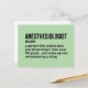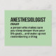 This hilarious anaesthesiologist job definition postcard makes a thoughtful and light-hearted gift for anyone in the medical field. Perfect for anaesthesiology residents, CRNAs, doctors, and med school graduates. Great way to add humour to workplace notice boards or medical student dorm rooms.